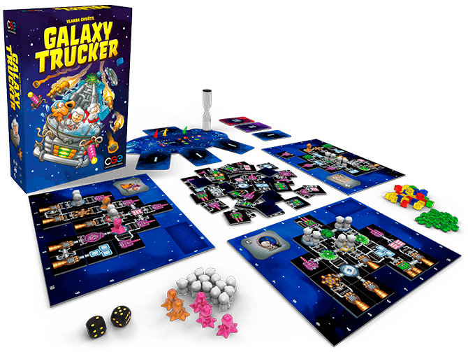 Dans Galaxy Trucker, le but est d'arriver le premier avec un vaisseau relativement intact.