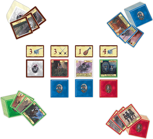 Chaque joueur a un jeu de cartes d'influence et commence avec une main de trois cartes.