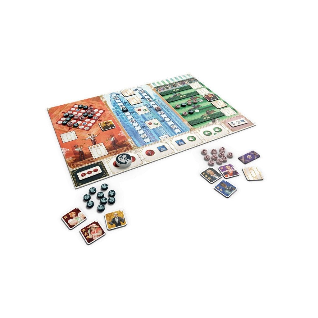 Sur le plateau de jeu se trouvent trois lieux, chacun offrant différentes opportunités d'obtenir des tuiles de personnage : le cabaret, le centre financier et l'hippodrome. Pour obtenir ces personnages, chaque joueur déplace à tour de rôle le marqueur d'action sur l'une des quatre cases d'action - mais pas celle qui vient d'être prise par l'adversaire - puis l'active.