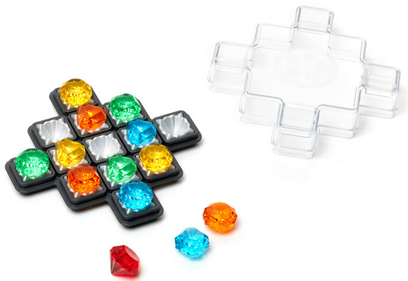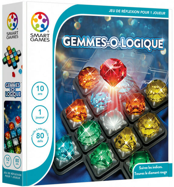 Gemmes-O-Logique est un jeu de réflexion solo qui comporte 80 défis, du plus facile au niveau expert. Placez correctement tous les bijoux sur le plateau afin de trouver le diamant rouge.