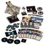 - 1 livret de règles, 27 cartes, 28 marqueurs, 2 cadrans de manœuvres, 2 vaisseaux en plastique peints avec socles et fixations.