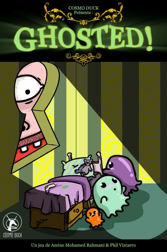 Dans Ghosted!, vous incarnez des familles de fantômes un peu timides, qui vivent dans un grand manoir. Votre but est de parvenir à faire traverser la salle principale à 6 de vos fantômes, sans vous faire repérer par les curieux qui regardent régulièrement par les trous des serrures des nombreuses portes qui entourent cette étrange demeure.