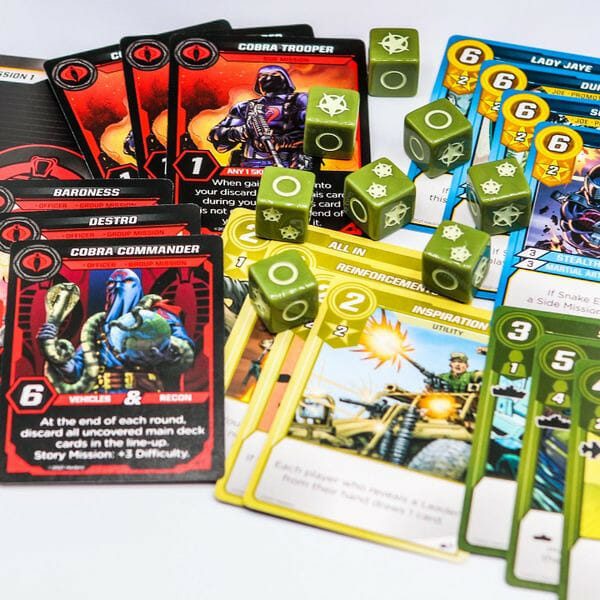 Chaque joueur commence la partie avec un maigre deck qui deviendra de plus en plus puissant au fur et à mesure que vous recruterez des vétérans de l'équipe G.I. JOE, que vous réquisitionnerez de l'équipement et que vous utiliserez de nouveaux véhicules.