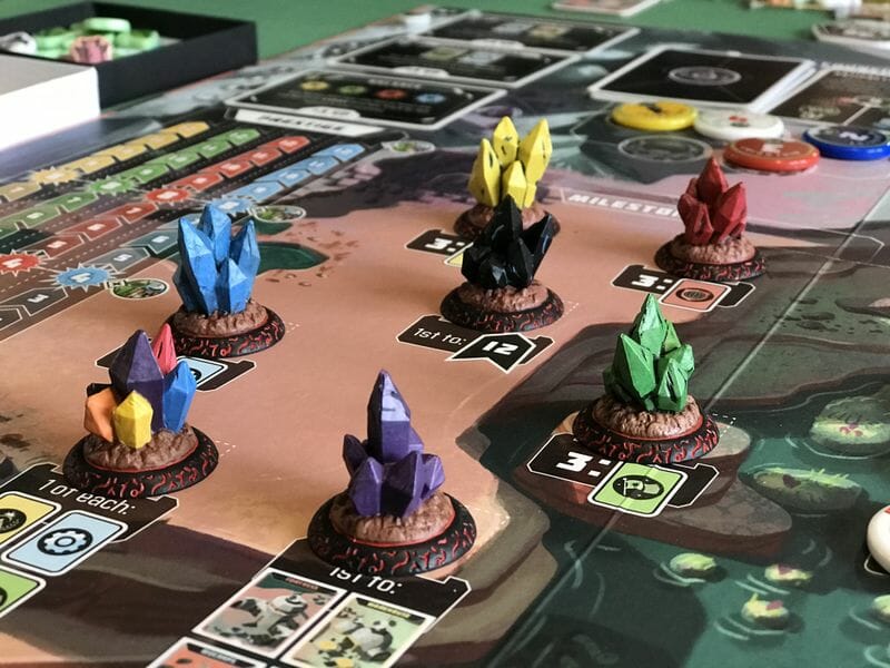 Points -- Le prestige s'acquiert sur 4 pistes (Défense, Exploration, Commerce, et Infrastructure) et votre position sur ces pistes vous fait gagner des points à la fin de la partie. Vous pouvez également gagner des points en franchissant des étapes de civilisation (une seule nation peut revendiquer chaque étape), en remplissant les cartes de score de la saison lunaire (n'importe quel nombre de nations peut les remplir), en construisant d'anciens Xénoréliques, en remplissant des cartes d'objectifs spéciaux et pour les ressources restantes.