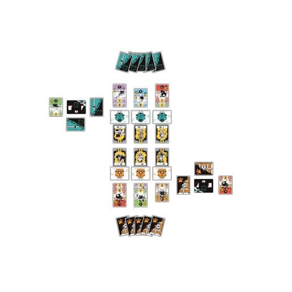 – poser une carte dans une de vos colonnes (interdiction de poser dans celle qui a le plus de cartes) et d’appliquer son effet – défausser une carte d’une de vos colonnes et appliquer son effet de défausse,
