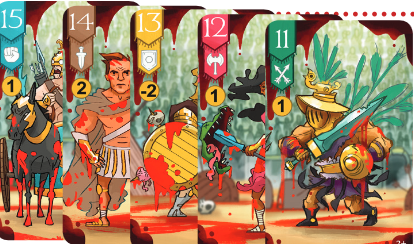 Les joueurs reçoivent une main de dix cartes de gladiateur et doivent jouer un gladiateur à chaque combat (tour). Il y a une école préférée (atout) et le gladiateur le plus fort de cette école gagne le combat. Si aucun gladiateur préféré n'est entré dans le combat, alors le gladiateur initiateur le plus fort (couleur demandée) gagne. Les joueurs doivent suivre l'école initiatrice si possible, ou ils peuvent "défier" en faisant correspondre la force du dernier gladiateur joué, changeant immédiatement l'école préférée à celle de leur gladiateur !