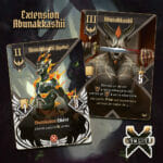 Les joueurs et joueuses découvriront avec Abunakkashii de nouveaux concepts. Les effets de cartes Akasha persistent tout au long de la partie, que la carte soit encore en jeu ou non ! La Corruption est une mécanique à double tranchant, qui permet à un adversaire de « voler » l’effet de la carte corrompue jouée en échange d’un jeton Corruption. Chaque jeton réduit la taille de main de 1, mais augmente la valeur militaire de 1. Ces jetons sont nécessaires pour pouvoir mettre en jeu des Abominations. Toutefois, en abuser pourrait vous être fatal…