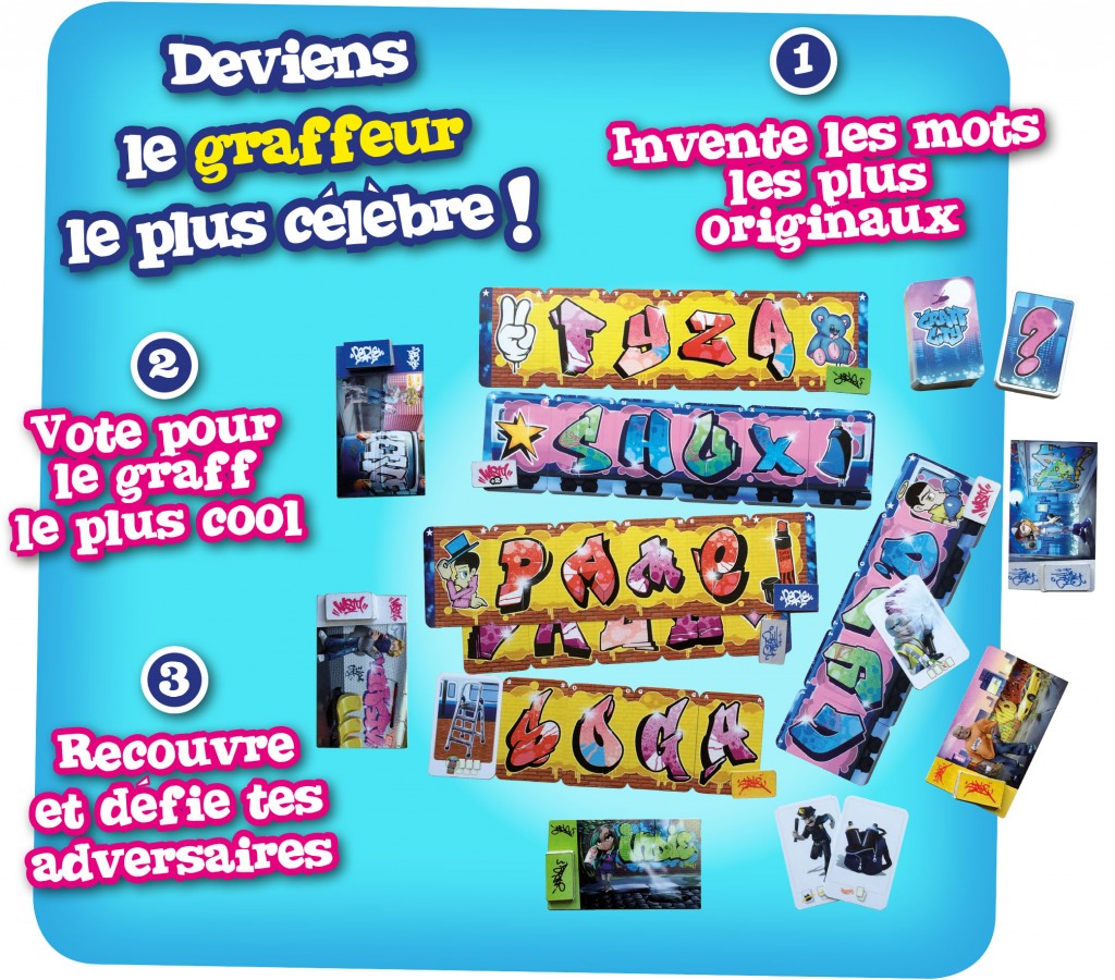 Coulisses : Les 122 Lettres et le logo du jeu ont été dessinés à la main par 5 « Street Artists » internationaux reconnus pour leur grand talent : Cope2, Indie184, Nasty, Perle, RosyOne. Leurs personnages et décors ont été magnifiquement illustrés par Regis Torres.