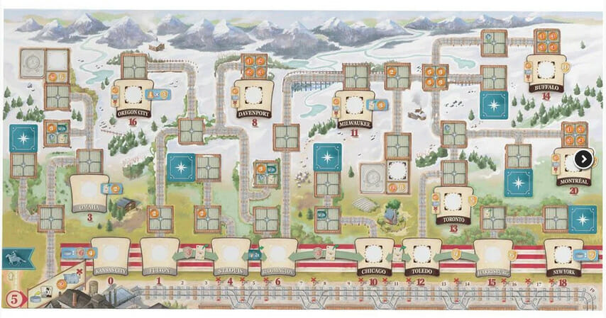 Les affaires sont beaucoup plus difficiles sur ce chemin de fer, donc les joueurs voudront profiter de l'hospitalité amicale en établissant des succursales et en aidant à fondations de villes. En plus du nouveau système ferroviaire, les joueurs découvriront également de nouvelles tuiles, des bâtiments privés et un plateau de jeu élargi pour offrir plus de profondeurdans leur prise de décision.