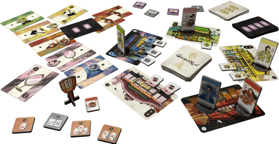 Pour ce faire, les joueurs aident leurs geishas préférées à progresser et à gagner en prestige en pratiquant leur art dans différents salons de thé. Les geishas commencent comme apprenties (maiko) mais deviennent des geishas à part entière et marquent des points de prestige après avoir accumulé le patronage nécessaire pour retourner dans leur maison de thé d'origine (ochaya) pour la cérémonie de remise des diplômes (erikae). Certaines geisha peuvent poursuivre leur chemin et finir par hériter de la maison de thé (lors d'un second retour) pour devenir la nouvelle okaasan, reconnue avec plus de points de prestige.
