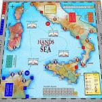 Chaque joueur a son deck qui permet d'effectuer plusieurs actions, jusqu'à 2 par tour. Coloniser, déplacement des navires, guerroyer... les activités tournent autour de la Sicile, la Corse, la Sardaigne. Vous pourrez acheter de nouvelles cartes depuis vos propres decks perso, ou un set de cartes neutres commun. Il y a des cartes stratégies que chaque joueur peut acheter (une max) qui donne des bonus particuliers.