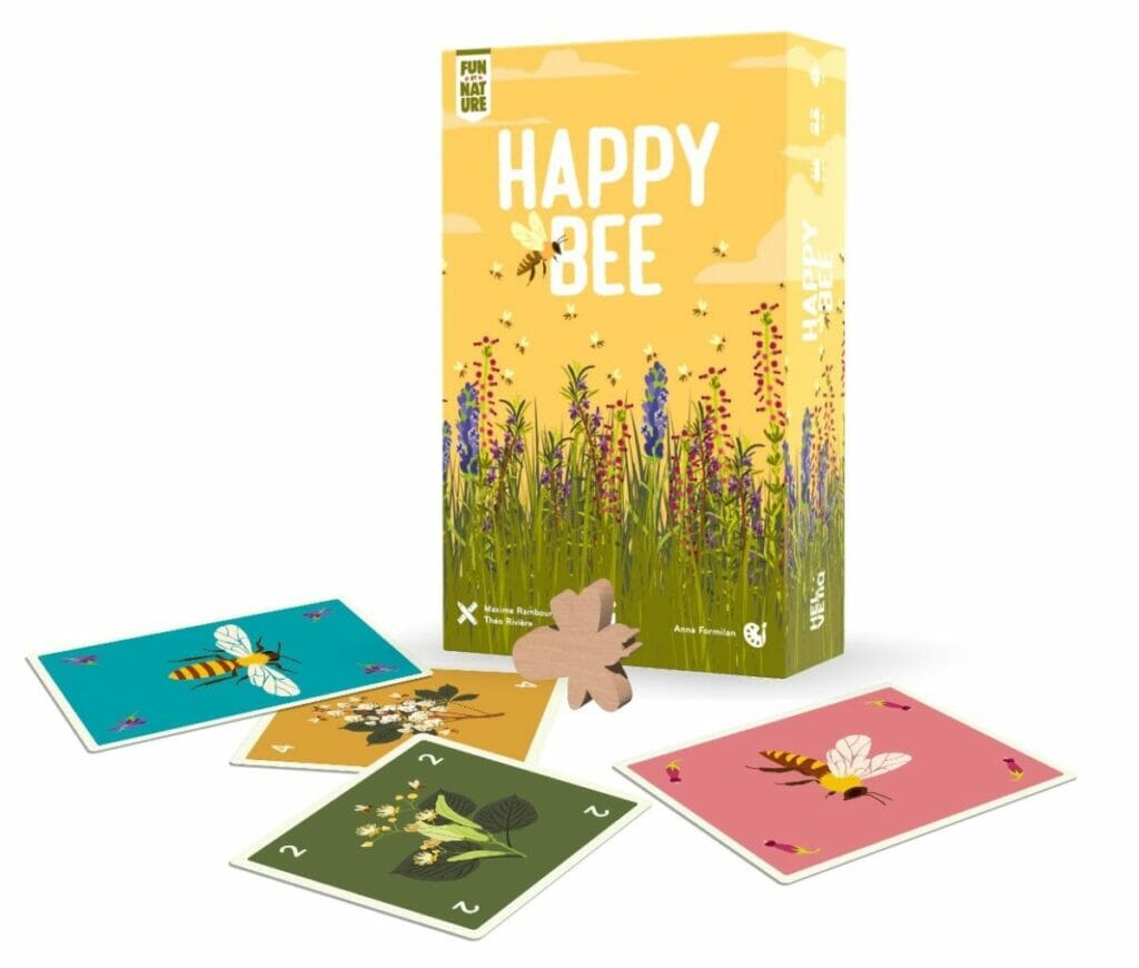 Le printemps approche, les abeilles se réveillent et avec Happy Bee vous allez pouvoir les aider à butiner leur fleur préférée. Jouez des cartes abeilles et passez les autres à vos adversaires. Votre but : polliniser le plus grand nombre de fleurs. Choisissez bien les cartes abeilles que vous souhaitez jouer pour remporter la majorité et ainsi récupérer des fleurs. Mais prenez garde, vous n’êtes pas le ou la seul·e à vouloir récupérer les fleurs qui rapportent le plus de points de victoire. Un jeu pour toute la famille, créé en partenariat avec le magazine La Salamandre et Greenpeace : apprenez-en plus sur les miels et les abeilles !