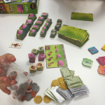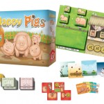 Happy Pigs est un jeu taïwanais conçu par Kuraki Mura (Wa Chat Bi… ) sorti initialement en 2013, et repris maintenant par Iello. Ils ont fait appel à Biboun pour