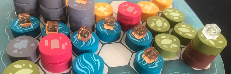 Dans Harmonies, construisez des paysages en plaçant des jetons de couleur et créez des habitats pour vos animaux.