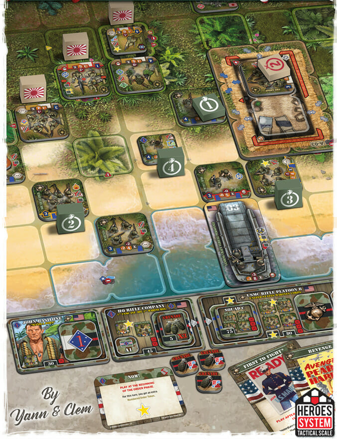 Les Devil Pig en ont eu assez du bocage normand, des villes en ruine et des plages du Cotentin. Ils ont donc décidé de prendre quelques vacances et de s’envoler pour une de ces îles paradisiaques aux plages de sable blanc bordées de cocotiers. Quel endroit pourrait être plus enchanteur que l’archipel des Îles Salomons ? Et particulièrement l’île de Guadalcanal, avec ses montagnes, ses bords de mer, ses criques et son terrain d’aviation. À peine débarqués de leur LCT, nos cochons démoniaque, trop heureux de pouvoir enfin poser leur lard sur une chaise longue, ne font pas attention à la présence des braves soldats de l’Empereur Hiro Hito.