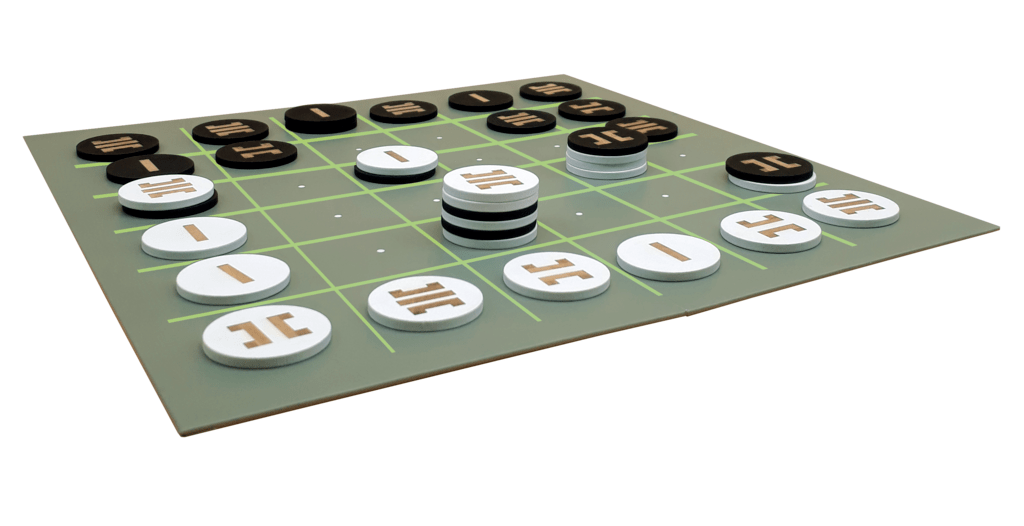 Pour gagner la partie, il vous faudra créer des piles de jetons ou voler celles de votre adversaire. Les déplacements se font de 1, 2 ou 3 cases en fonction de la valeur du jeton au sommet de la pile que vous déplacez. Vous pouvez déplacer une pile seulement si vous la contrôlez (avec un jeton de votre couleur à son sommet). Un simple jeton ne s’empile que sur un autre jeton seul et les piles quand à elles, ne pourront se poser que sur les autres piles. Pour bouger vos pièces, vous ne pourrez passer que par les cases occupées. Plus les cases se vident, plus les chemins à emprunter deviennent rares. Il vous faudra anticiper les coups à venir.