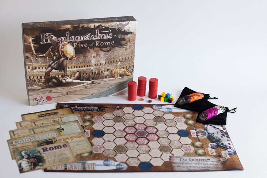 Hoplomachus combine le combat, la tactique, la gestion des jetons (unités), la progression de niveau (grâce au système de faveur de la foule), le jeu d'équipe, le jeu joueur contre le tableau, et bien plus encore.