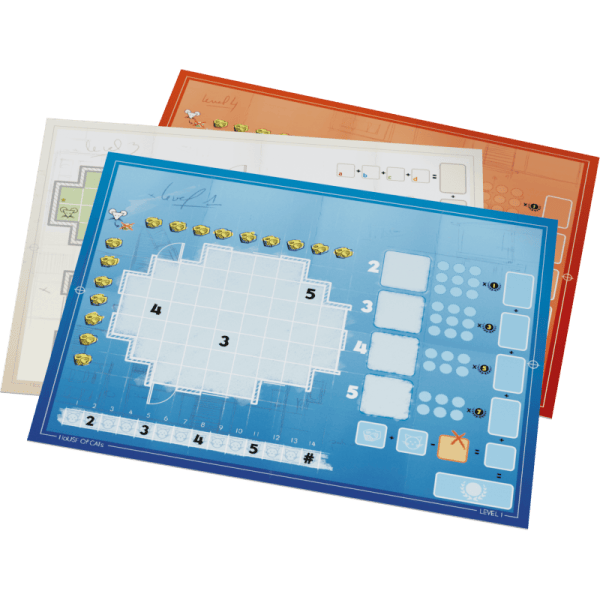 À chaque tour, un joueur lance les dés et tous les joueurs utilisent les résultats pour remplir les espaces sur leur feuille de jeu individuelle. Continuez à jouer à tour de rôle jusqu'à ce qu'un joueur ait rempli toutes les cases de sa feuille de jeu. Essayez de regrouper des nombres égaux. Une salle est formée si vous formez un groupe dont la taille est égale au nombre qui le compose (par exemple, des groupes de deux 2, trois 3, quatre 4 ou cinq 5). Chaque pièce complétée rapporte des points et vous donne accès à une capacité spéciale. Les chats et les souris marquent des points en fonction du niveau auquel vous jouez.