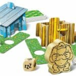 Comme action, vous pouvez CONSTRUIRE une belle chose dans votre jardin - mais seulement si le singe n'est pas devant votre hutte. Une autre action possible est de DÉPLACER le singe endormi vers une autre hutte de joueurs. Vous pouvez également réveiller le singe lorsqu'il est dans une autre cabane de joueur.