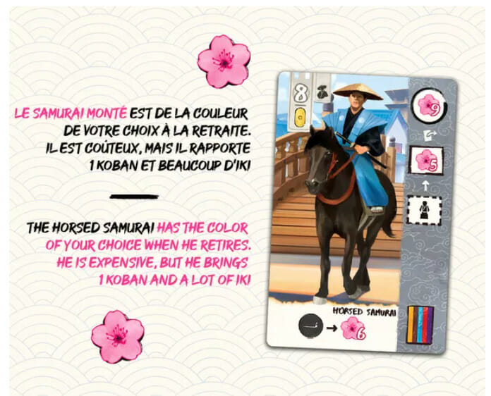 L'extension Akebono ajoute également de nouvelles cartes de personnage, des cartes de bâtiment et de nouveaux jetons de pipe, de tabac et de poisson pour plus de profondeur stratégique et de prise de décision.