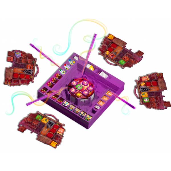 À l'aide de vos baguettes magiques, pointez simultanément un des jetons dans la salle de la tour pour le récupérer. Si deux joueurs pointent le même objet, le joueur avec la baguette la plus forte remporte l'objet mais doit échanger sa baguette avec le perdant. Seules certaines combinaisons vous donneront accès aux potions mystérieuses et aux grimoires magiques. Une fois que vous aurez fouillé les différentes pièces de la tour, vous pourrez affronter les méchants sorciers, en utilisant leur seule et unique faiblesse pour les vaincre !