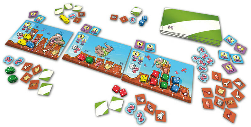 Chaque joueur possède 5 dès d'une même couleur. A son tour, il lance un des dés qui lui reste et le place sur une des cartes. S'il a déjà placé un dé sur la carte en question, il doit placer ce dés dans la même colonne, sinon il doit le placer dans la colonne non occupée la plus à gauche. Chaque fois qu'il pose un dés sur un symbole, il gagne l'objet en question (bout de lunette, gant, etc. ou petit vers de terre). Le vers de terre permettent de relancer le dé ou de passer son tour, les autres objets permettent de marquer des points en fin de partie.