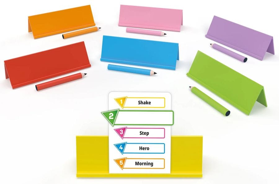 Plus précisément, tous les joueurs, à l'exception du joueur actif, voient le mot mystère, puis chacun écrit indépendamment un indice sur son chevalet personnel. Une fois que tout le monde a terminé, vous révélez vos indices les uns aux autres. Tous les indices identiques sont retirés du jeu, alors essayez d'être original !