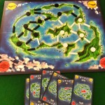 Une carte permet de placer un bâtonnet qui matérialise un pont sur une liaison entre 2 îles (une liaison est signalée par des pointillés). Ce pont prend ancrage sur l'île désignée par la carte. Dès qu'un joueur a placé des ponts sur plus de la moitié des liaisons existantes sur une île, cette île lui appartient. Il y place un pion de sa couleur pour l'indiquer. 2 cartes identiques abaissées en même temps permettent de retirer un pont adverse de l'île concernée. Quel que soit le nombre de cartes abaissées, à la fin de son tour un joueur doit piocher une et une seule carte s’il a moins de 5 cartes et que l’adversaire n’a pas pioché au tour précédent.