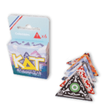"Sorte de Pog triangulaire, le Kat est une pièce décorée de motifs colorés de 5 centimètres de côté. Le but du jeu est, en lançant l'un de ses Kats, de récupérer les Kats de ses adversaires en les recouvrant. Le jeu est né sur une île lointaine où des tribus rivales s'en servaient comme tarot... mais surtout en 2021 de l'imagination de l'éditeur lillois Gauvain Toys, qui a également lancé un anime avec le studio d'animation Atelier Emoga.