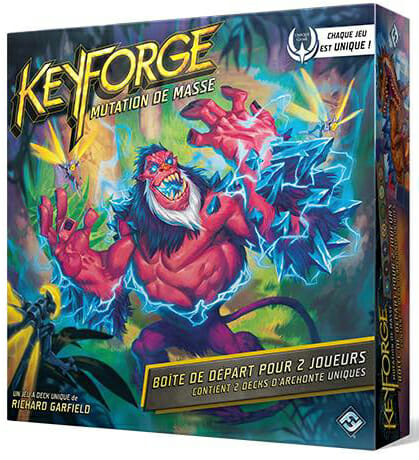 Comme les sets précédents de KeyForge, vous aurez de très nombreux moyens de prendre part au jeu. Si vous y jouez déjà, vous pouvez facilement prendre quelques decks d'Archonte de Mutation de Masse, chacun d'entre eux offrant un deck unique prêt à jouer. Ou, si vous êtes un nouveau joueur, le Pack Deluxe Mutation de Masse contient un deck et des jetons pour un joueur, tandis que la Boîte de Départ pour 2 Joueurs comprend deux decks, deux tapis de jeu et des jetons pour vous et votre adversaire. Que vous jouiez à KeyForge depuis le premier jour, ou que vous veniez de découvrir ce jeu, Mutation de Masse est la porte d'entrée parfaite pour débuter.