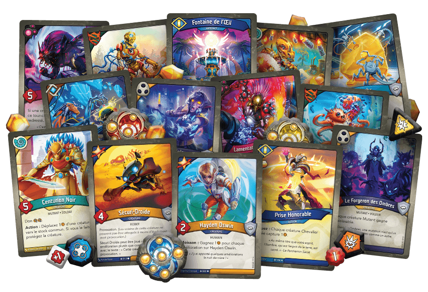 La réserve de cartes de KeyForge s'agrandit de nouveau avec Mutation de Masse, vous donnant accès à des milliards de decks totalement uniques, possédant leurs propres stratégies et tactiques que vous apprendrez à maîtriser au fur et à mesure de vos parties. Constituant une réserve de 422 cartes, Mutation de Masse propose plus de 250 nouvelles cartes pour vos decks, et l’aombre noir risque d’apporter de nombreuses mutations à vos decks. Vous verrez de nouvelles versions de personnages bien connus, des créatures gigantesques qui s'étendent sur plusieurs cartes, et le retour triomphant de la Maison Sanctum.