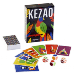 Kezao est un jeu de rapidité qui fait appel au sens de l’observation des couleurs figurant sur un dessin. Les joueurs doivent trouver rapidement une carte compatible avec les indications de couleurs, présente ou absente, indiquées sur les dés. Le but du jeu est d’être le premier à se défausser de toutes ses cartes.