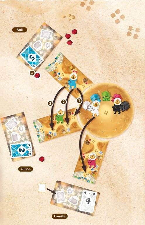Avec un système de jeu aussi captivant que le tir à la corde, vous rivalisez pour acquérir des trésors convoités tels que des sacs de sel, des tapis somptueux et des théières exquises tout au long de la partie. Chaque décision que vous prenez est cruciale alors que vous manœuvrez pour accumuler ces richesses et atteindre vos objectifs commerciaux.