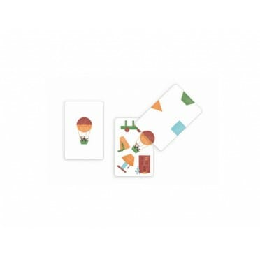 Les cartes Kotakote sont réversibles: une face avec des demi-objets, une face avec des formes géométriques.