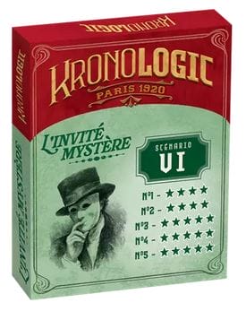 Ce sixième scénario Kronologic - Paris 1920 : L’Invité Mystère fait apparaître un septième personnage dans l’intrigue. Les convives de la soirée sont persuadés de l’avoir vu, certains lui ont même parlé, et pourtant aucun n’est capable de mettre un nom sur son visage…