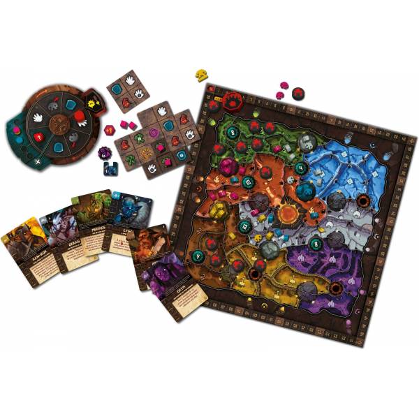 La Chute du Roi de la Montagne se déroule en trois manches appelées vagues. Au début de chaque vague, vous améliorez votre ascendance, un ensemble de symboles déterminant vos capacités. À chacun de vos tours, vous effectuez des actions pour placer vos trolls dans les cavernes (en affrontant vos rivaux et en combattant des gnomes) ainsi que pour ajouter des trolls sur le plateau, manipuler les gnomes et influencer de puissants champions afin qu’ils rejoignent votre faction.