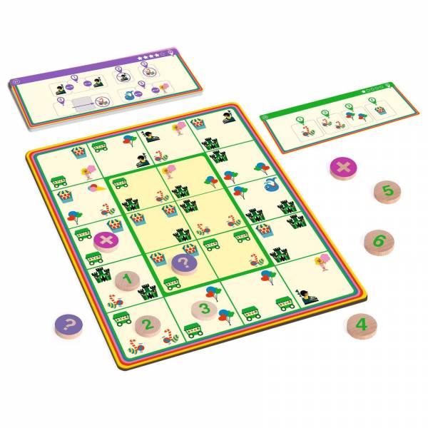 Labypark - Sologic est un jeu de logique de la gamme Sologic de Djeco qui se joue seul ou en coopération, dès 7 ans ! Labypark se compose de 50 challenges de difficulté croissante.