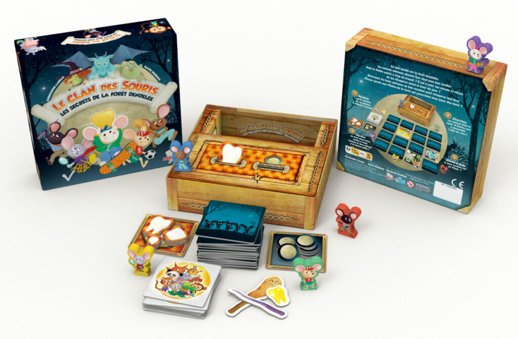 - -18 tuiles Forêt -9 tuiles Mission -1 tuile Garde-dents - 1 tuile Garde-lunes - 1 coffre aux dents - 5 tuiles Apprenties souris - 5 figurines en bois - 3 jetons Trophée - 9 jetons Dent -11 jetons Lune