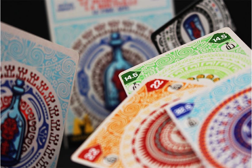 Les cartes sont distribuées, puis chacun se défausse d'une carte placée sous la bouteille. On donne aussi à son voisin une carte face cachée.