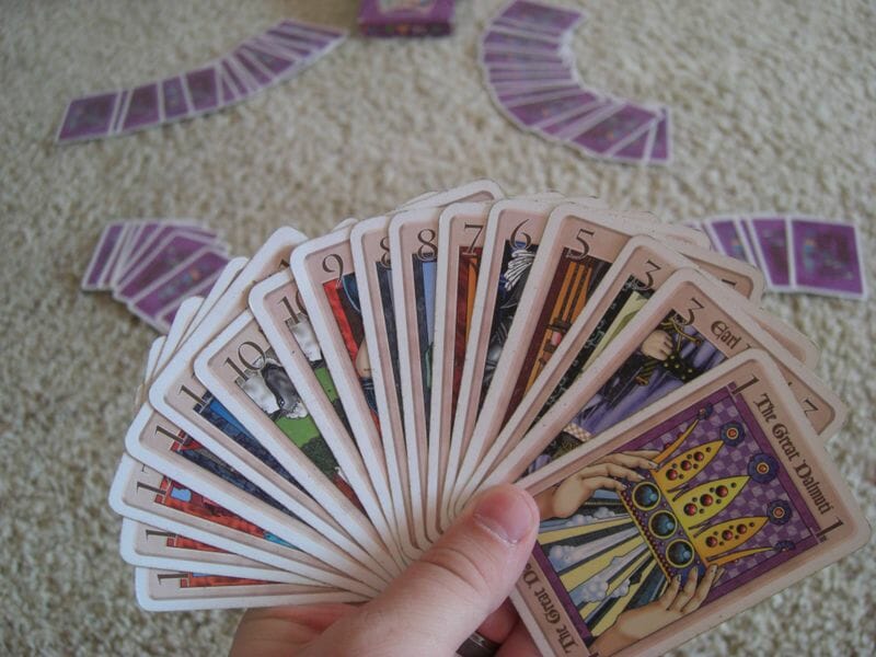 Le jeu commercial de 80 cartes contient des cartes classées de 12 à 1, ainsi que deux Jesters. Chaque carte porte un numéro, qui non seulement correspond à son rang, mais qui indique également combien de ces cartes existent dans le jeu. En d'autres termes, il y a douze 12, onze 11, quatre 4 et une seule carte classée 1. Plus le chiffre est bas, plus le rang est élevé.