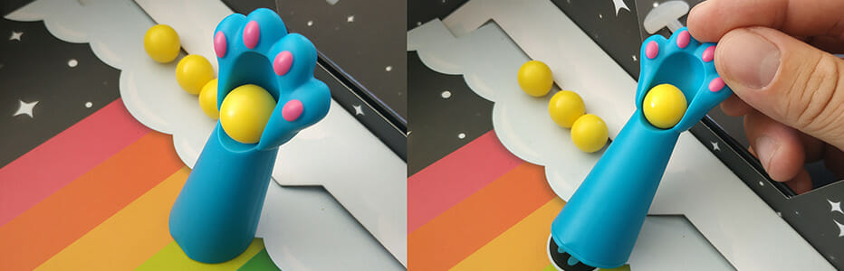 Utilisez la patte magnétique de votre chat pour tirer toutes les boules d'une même couleur sur votre adversaire.