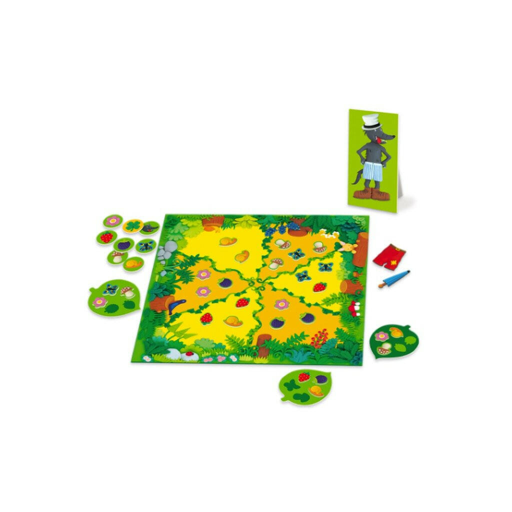 Le jeu du Loup est un jeu de société éducatif sur le thème de « Promenons-nous dans les bois ». Une règle de jeu très simple et conviviale, qui propose aux enfants 2 modes de jeux différents : tous ensemble contre le loup ou chacun pour soi. Vite, vite ! Il faut faire sa cueillette avant que le loup ne soit complètement habillé, sinon... il vous mangera !