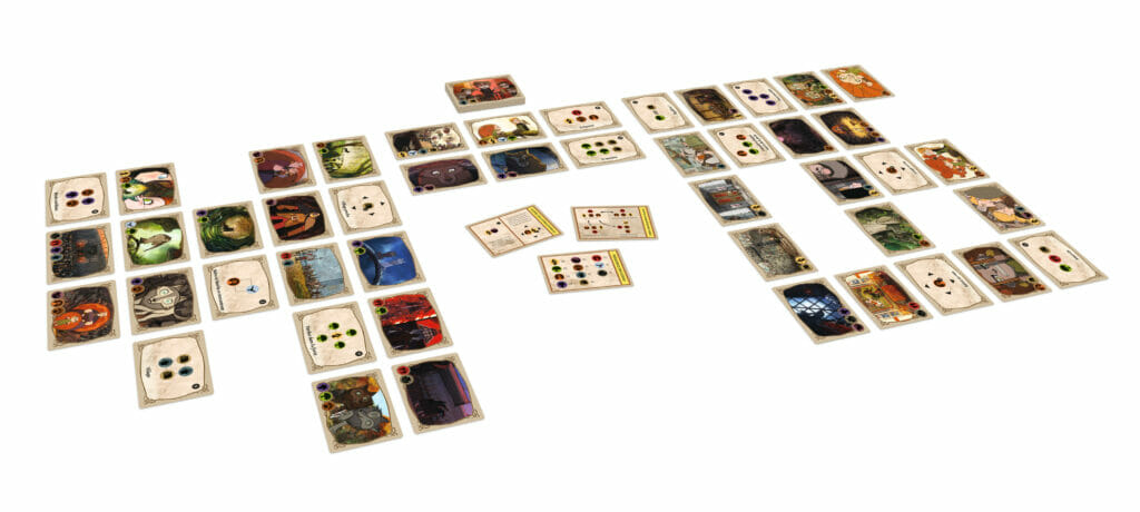 À chaque tour, vous prenez l'une des six cartes double face disponibles et la placez dans votre grille, en prenant soit l'une des deux cartes Objectif qui indiquent comment marquer des points, soit l'une des quatre cartes Histoire qui vous aideront à remplir ces objectifs. Les objectifs sont de trois types : des formes qui récompensent une disposition spécifique des cartes, des flèches qui récompensent le placement de certaines icônes sur la même ligne ou colonne que l'objectif, et des équations qui récompensent le même nombre de certaines icônes n'importe où dans votre grille 5x5. Chaque carte que vous placez après la première doit être adjacente à une autre carte. Une fois que les deux joueurs ont complété leur grille, le jeu se termine et le joueur qui a le plus de points gagne.