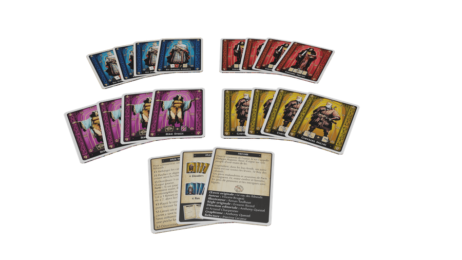 Le Roy des Ribauds est un jeu de cartes tendu et stratégique, mais faussement simple, qui vous permettra de vous immerger dans l'univers riche de la France médiévale.