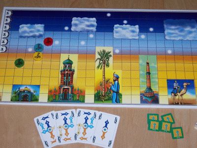 Un jeu de course de cartes, dans lequel vous devez éviter les obstacles (placés collectivement par les joueurs au début), manœuvrer votre tapis entre les nuages et utiliser le vent pour être le premier à destination. Un dé spécial ajoute un élément de chance important au-delà du tirage au sort, mais il reste une marge de manœuvre pour la stratégie.