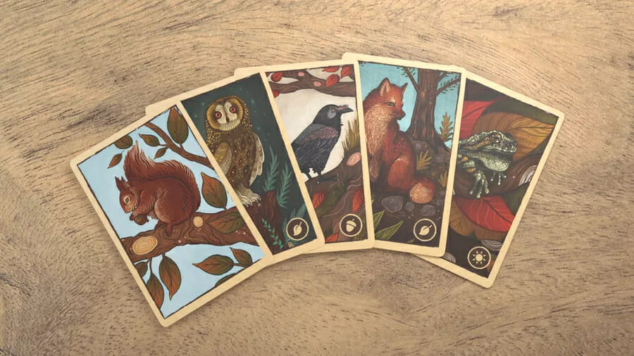 Leaf bénéficie d'un très joli matériel, avec une belle présence sur table en fin de partie avec son tapis de feuilles aux couleurs automnales et ses jolis animaux.