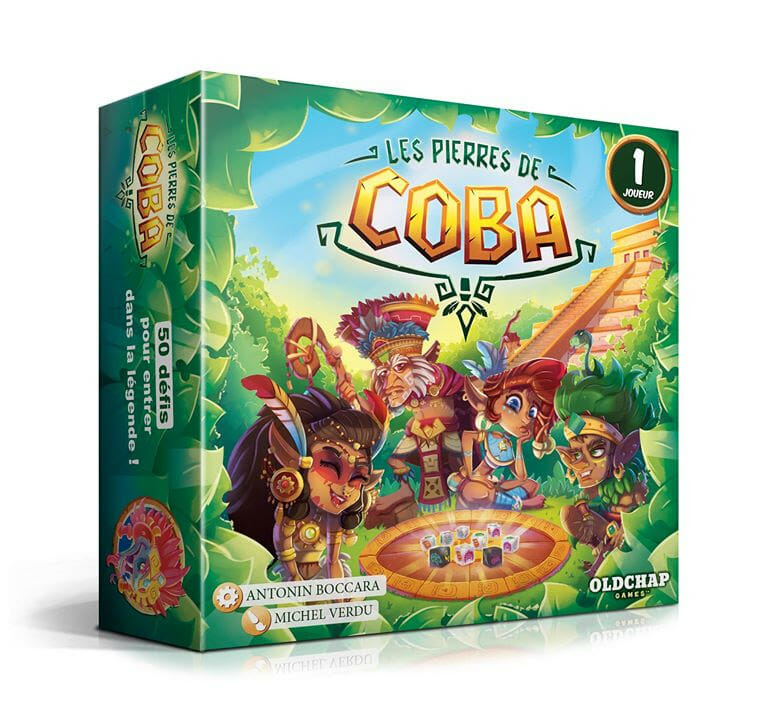 Dans Les pierres de Coba - un jeu solo, narratif et évolutif - vous devrez relever 50 défis pour rétablir l'équilibre de la société maya grâce aux 9 pierres sacrées (9 dés sculptés).
