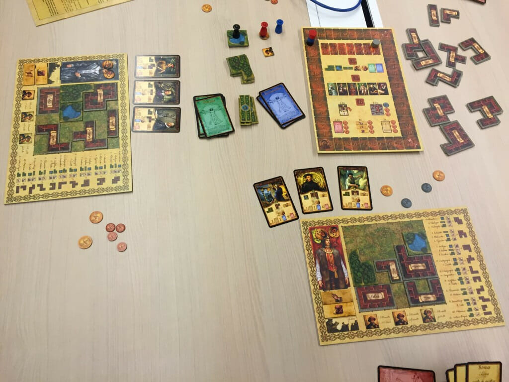les indispensables services des architectes et des saltimbanques. Des cartes de prestige et des cartes de bonus, permettent aussi de gagner du prestige.