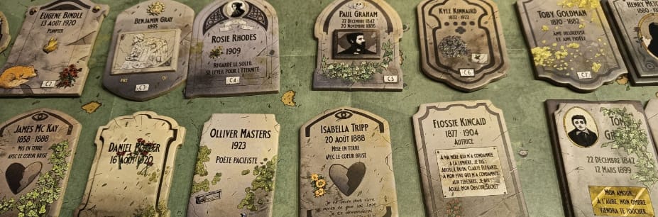 1925. Un cimetière sur une colline de l’Illinois. Ensemble, résolvez les 11 mystères des anciens habitants grâce aux épitaphes inscrites sur leurs stèles. Pas de points ni de victoire.
