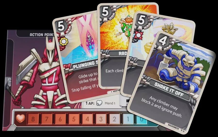 Le jeu de cartes multi-usages de chaque personnage est unique, lui permettant de grimper, de sauter et de glisser sur le plateau de différentes manières.